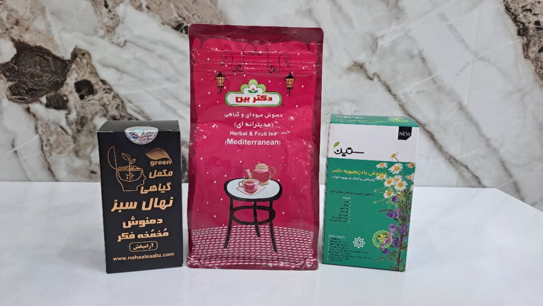 دمنوش مدیترانه: ترکیبی از چای ترش، سیب، میوه نسترن، کشمش، پوست پرتقال و بهلیمو که با عطر و طعم طبیعی خود، آرامش ذهن و کاهش تنشهای روزانه را تقویت میکند.